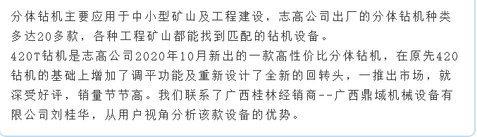 - 案例賞析|志高機(jī)械分體式露天潛孔鉆機(jī)420T服務(wù)廣西市場(chǎng)