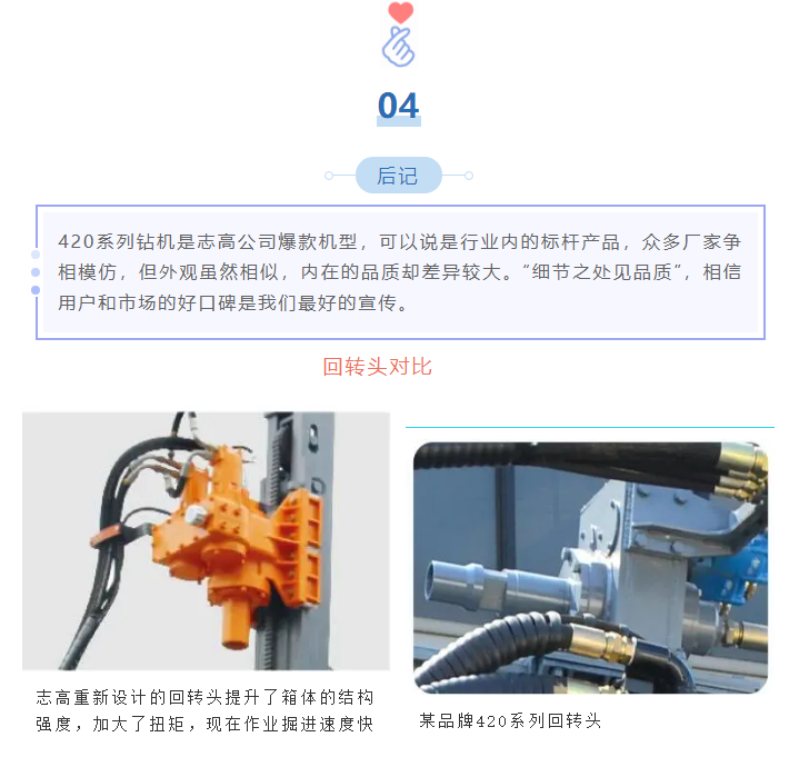 - 露天潛孔鉆機(jī)是志高公司最具優(yōu)勢(shì)和知名度的產(chǎn)品,設(shè)備種類豐富,功能齊全、質(zhì)量穩(wěn)定、市場(chǎng)占有率高,多款經(jīng)典機(jī)型在市場(chǎng)上一直被模仿,但從未被超越。本期,我們與大家分享志高分體式鉆機(jī)的經(jīng)典之作—420T系列的應(yīng)用案例。