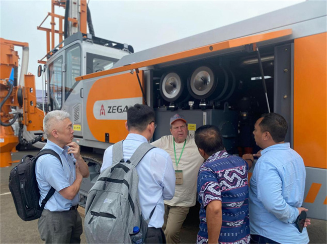2024年9月11日,第22屆印尼礦業(yè)展覽會(huì)(Indonesia Mining Exhibition)在雅加達(dá)盛大開幕,志高機(jī)械印度尼西亞經(jīng)銷商ANK公司及志高公司代表攜ZEGA D480RC、ZEGA T640J及ZEGA SPD880D-8多款設(shè)備參展。 - ZEGA D480RC是志高公司最新投放市場(chǎng)的一體式反循環(huán)勘探鉆機(jī),配備410kw大功率康明斯發(fā)動(dòng)機(jī)和25bar壓力、33m3/min大排量空壓機(jī),能夠滿足120-150mm孔徑反循環(huán)品位控制鉆探孔的鑿巖需求。反循環(huán)裝置的支座為多角度鉆架,可滿足各種復(fù)雜工況。此外,ZEGA D480RC還充分考慮了鉆機(jī)操作人員的安全和舒適度,配備獨(dú)立遙控系統(tǒng),可遠(yuǎn)距離對(duì)反循環(huán)裝置進(jìn)行精準(zhǔn)遙控控制,使操作人員遠(yuǎn)離粉塵、碎屑及其他操作風(fēng)險(xiǎn)。