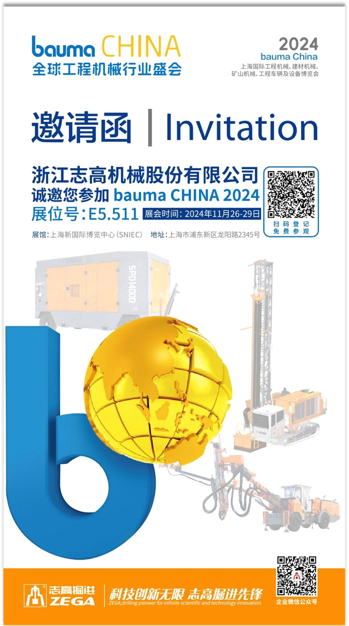 - 2024年11月26日,上海寶馬工程機械展將在上海新國際博覽中心開展,志高機械將攜多款新產(chǎn)品參展。  - 非凡的實力 - 志高機械成立21年來,空氣壓縮機累計銷量超16萬臺,鑿巖鉆機累計銷量超2.6萬臺。我們不僅有100%自主研發(fā)生產(chǎn)的螺桿主機,還掌握鉆機核心技術(shù)。被評為******高新技術(shù)企業(yè)和“國家專精特新小巨人”企業(yè)、成為中國履帶式露天鉆車行業(yè)標準制定單位、產(chǎn)品被列入國家火炬計劃……志高機械,擁有非凡實力!  - 柴油移動螺桿空氣壓縮機ZEGA SPD670D - 卓越的志高產(chǎn)品 - 此次展會共有十幾款志高產(chǎn)品展出,包括:露天鉆機ZEGA D480RC、ZEGA R8100;地下臺車ZEGA UP31B、ZEGA UM21K;工程螺桿式空氣壓縮機ZEGA SPD670D等。展位面積高達600平方米,您將在這里感受到一場ZEGA產(chǎn)品的視覺盛宴。  - 露天一體式反循環(huán)勘探鉆機ZEGA D480RC - 貼心的服務 - 為了讓您更好地了解志高的產(chǎn)品,我們還將在展會現(xiàn)場召開ZEGA露天鉆機、地下臺車和工程螺桿空氣壓縮機三場產(chǎn)品發(fā)布會,對產(chǎn)品進行詳細介紹。  - 地下錨桿臺車ZEGA UM21K - 11月26至11月29日,在上海新國際博覽中心E5.511展位,志高機械期待與您相遇!
