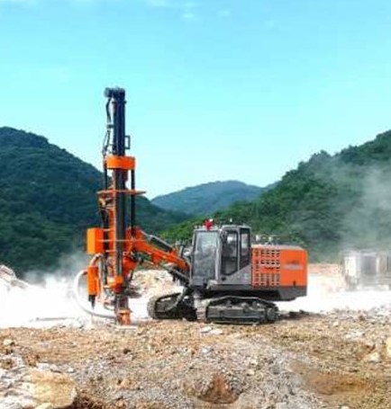 該客戶原有兩套志高410B分體式鉆機和兩套其它品牌的分體式鉆機。四臺分體式鉆機需要鉆機操作手8~10名,在設(shè)備正常出勤的情況下每天鑿巖作業(yè)米數(shù)為400米(90孔徑),在購置453A一體式自動鉆機后孔徑升級到115孔徑,每天鑿巖的米數(shù)在300左右,因此453A的高效能優(yōu)勢明顯,在爆破方量翻翻的情況下淘汰2套分體式鉆機及4個人工,每月可節(jié)省人工費3.2萬元左右,從而在采礦業(yè)同樣激烈競爭的市場中贏得了成本優(yōu)勢。案例三、以同行經(jīng)驗為鑒購買機器