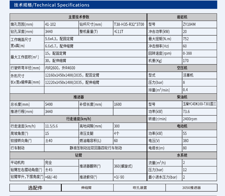 (3).控制系統(tǒng):液壓鑿巖控制系統(tǒng),擁有自動開孔、無潤滑無水不沖擊、回轉(zhuǎn)壓力自動控制推進返回、推進壓力自動控制沖擊及自動放卡釬功能;行走前后兩檔變速,過載爬坡時,發(fā)動機免熄火,自動適應降速及增大輸出扭矩。