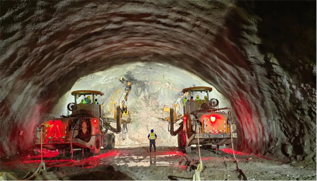 膠州灣二隧3標(biāo)項目全長7094.5米,由中鐵隧道局集團有限公司承建。該段地層以花崗巖為主,強度較高,需采用爆破法施工。志高機械研發(fā)生產(chǎn)的地下三臂臺車——UJ33在鉆孔過程在發(fā)揮了重要作用。它機載177 kw康明斯發(fā)動機,動力強勁;同時搭配ZY104M鑿巖機,鉆具損耗小,使用壽命長。每臺設(shè)備都有三條工作臂,兩臺設(shè)備同時工作,六條工作臂在不同方向和位置鉆孔,提高了鉆孔效率,為保證工程進(jìn)度保駕護航。