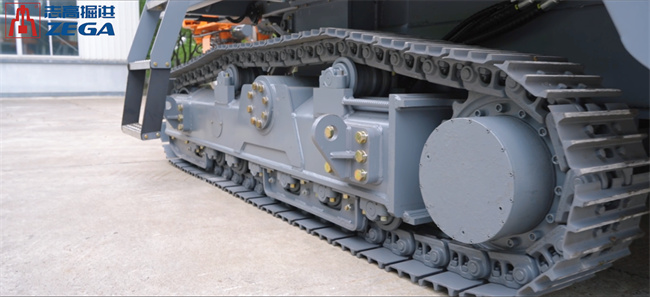 第一部份:履帶總成加長(zhǎng)升級(jí):履帶總成全面升級(jí),從6個(gè)承重輪增加到7個(gè),履帶節(jié)數(shù)從42節(jié)提升到46節(jié),穩(wěn)定性和通過(guò)性更強(qiáng),讓鉆機(jī)在各種復(fù)雜地形中都能如履平地。