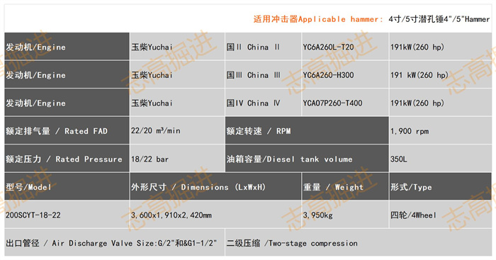 柴動系列產(chǎn)品特點:1.螺桿主機:采用自主研發(fā)高效大排量的螺桿機主機,自主研發(fā)的轉(zhuǎn)子型線,該型線相對傳統(tǒng)型線具有更合理的泄漏三角形、更短的接觸線、更小的排氣封閉容積。采用合理的軸承配置,提高轉(zhuǎn)子剛性,優(yōu)化噴油量,使壓縮機具有更低噪音和更小的振動。2.產(chǎn)品雙壓力設(shè)計,其中低壓時排氣量可加大15-20%,一鍵自由切換;低壓時更多配套工程、礦山項目的支護及其他設(shè)備的氣源;高壓時更多配套高風(fēng)壓潛孔沖擊器鑿巖及深孔排渣排泥;3.定制開發(fā)的專用控制器:主要參數(shù)、設(shè)備運行狀況、各項運行參數(shù)清晰顯示,加卸載、停機等功能一鍵操作,自動化程度高,通過壓力、溫度傳感器來監(jiān)控相關(guān)參數(shù),并通過發(fā)動機ECU和控制器計算并執(zhí)行合理的噴油量,達到程序壓力設(shè)置點時自動開啟節(jié)能模式,并可根據(jù)客戶特殊需求,增加程序功能,使用方便;4.產(chǎn)品配置移動、固定一體式設(shè)計,同型號可自由選配;產(chǎn)品的體積充分考慮了車載及裝箱的要求;機艙內(nèi)置隔音板,降低噪音同時保證維護空間;大型空壓機風(fēng)扇為離合風(fēng)扇配置,風(fēng)扇轉(zhuǎn)速結(jié)合排氣溫度進行電控,產(chǎn)品適用環(huán)境溫度區(qū)間更廣,節(jié)能及散熱效果好;采用獨立進風(fēng)設(shè)計,空濾進風(fēng)不受機器內(nèi)部高溫影響。